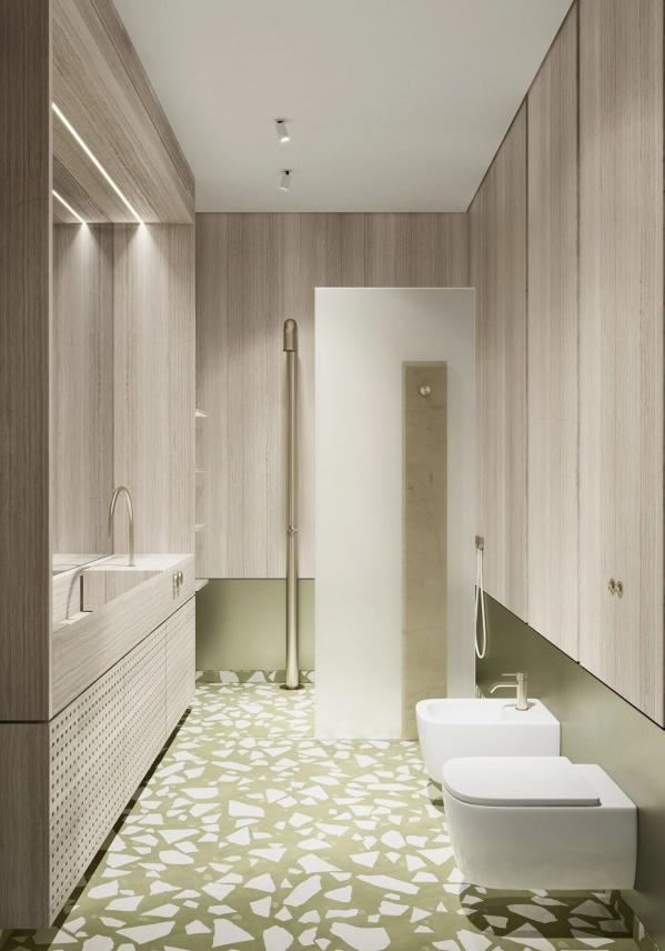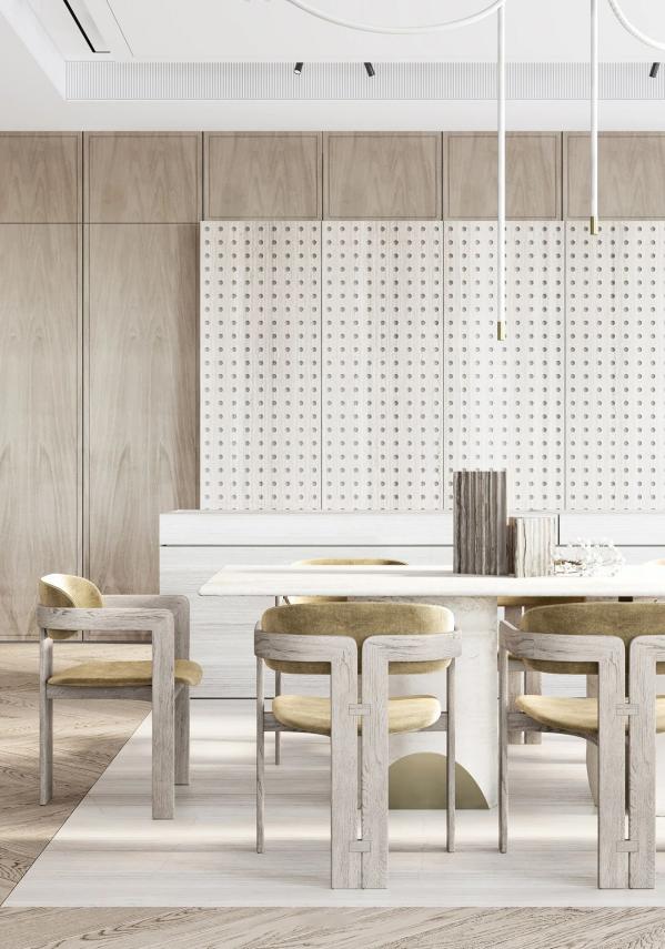大面積使用木質(zhì)裝飾材料,木地板、木質(zhì)櫥柜等,大面積使用白色,給空間以留白感,搭配起來(lái)十分簡(jiǎn)約好看,而又用舒服的明度較暗的綠色來(lái)點(diǎn)綴畫(huà)面,讓簡(jiǎn)約大方的房屋增加了幾分清新的感覺(jué)。