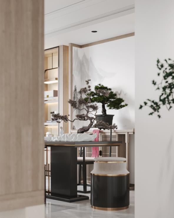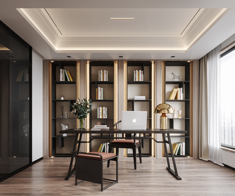 ▲側(cè)重于現(xiàn)代審美的新中式書(shū)房