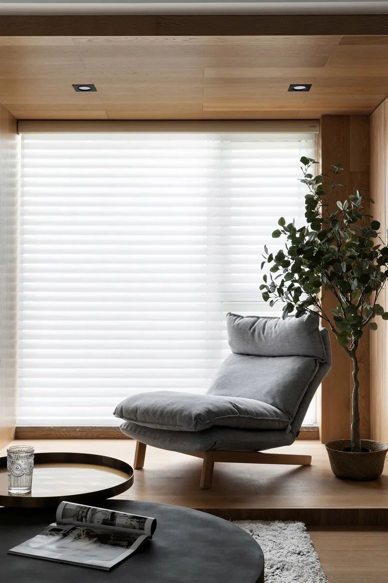 灰色躺椅呼應(yīng)著木調(diào),質(zhì)感樸素卻暗涌高級之味,一旁的尤加利木如小森林般詮釋自然舒適的居家理念,是人文內(nèi)涵與美學(xué)邏輯的同軌延伸。