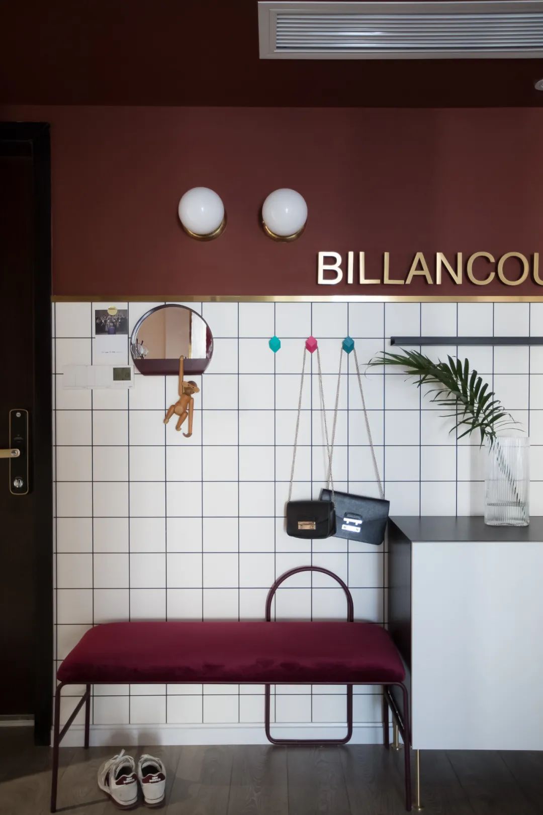 ● 是法式的直抵人心的浪漫,是簡約的人間煙火的溫暖,是跨越漫漫時間,也不會泯滅的家的品味和依戀。在紅色底片中加入金屬與黃銅打造精致感,白色瓷磚的加入平衡視覺感官,餐廳立體感自然形成。