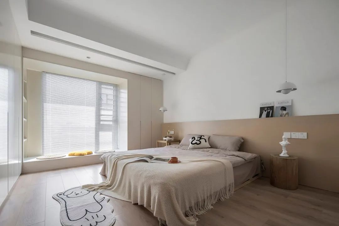 ◎ 仿若一杯冬天奶茶蔓延著香甜氣,豐盈著也溫暖著臥室一隅,色彩以最淡雅舒緩的姿態(tài)讓屋主每日朝夕休憩變的恬雅溫馨,眉頭涌露講不完的歡趣。