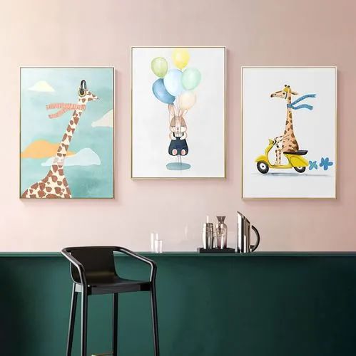 畫的類型多選擇漫畫類,顏色盡量以純色為主,也可適當(dāng)選擇童話類或抽象類掛畫,可以開拓孩子的腦筋,活躍孩子的思維,同時(shí)也能讓房間更具氛圍感。
