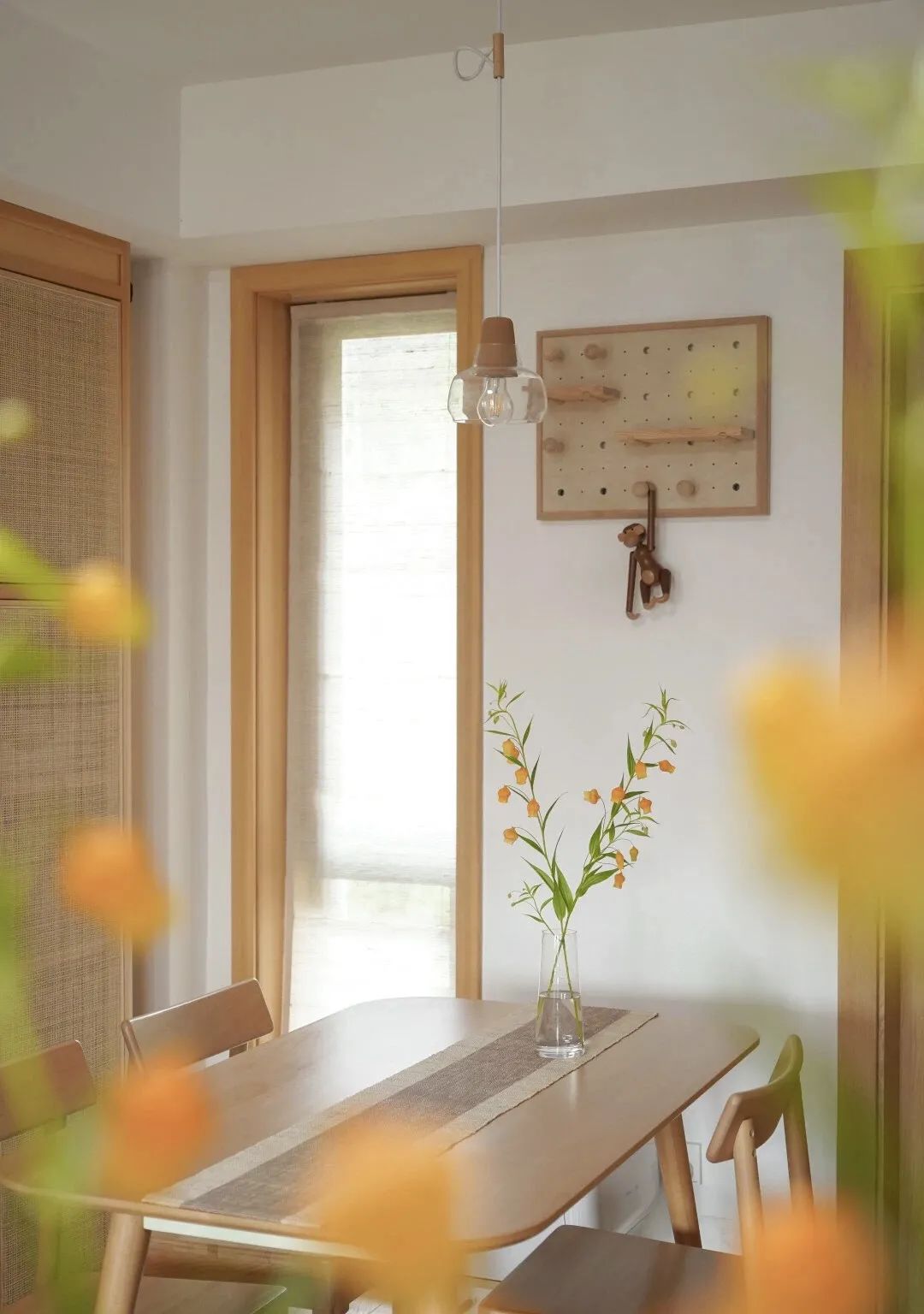 “選以原木,添以植物,鐫刻活潑印象”,洞洞板、藤編餐邊柜的加入,一切都顯得那么恬靜溫潤,和家人一起吃的一蔬一飯,都應(yīng)該具有儀式感。既溫暖了生活,又提升了幸福感。