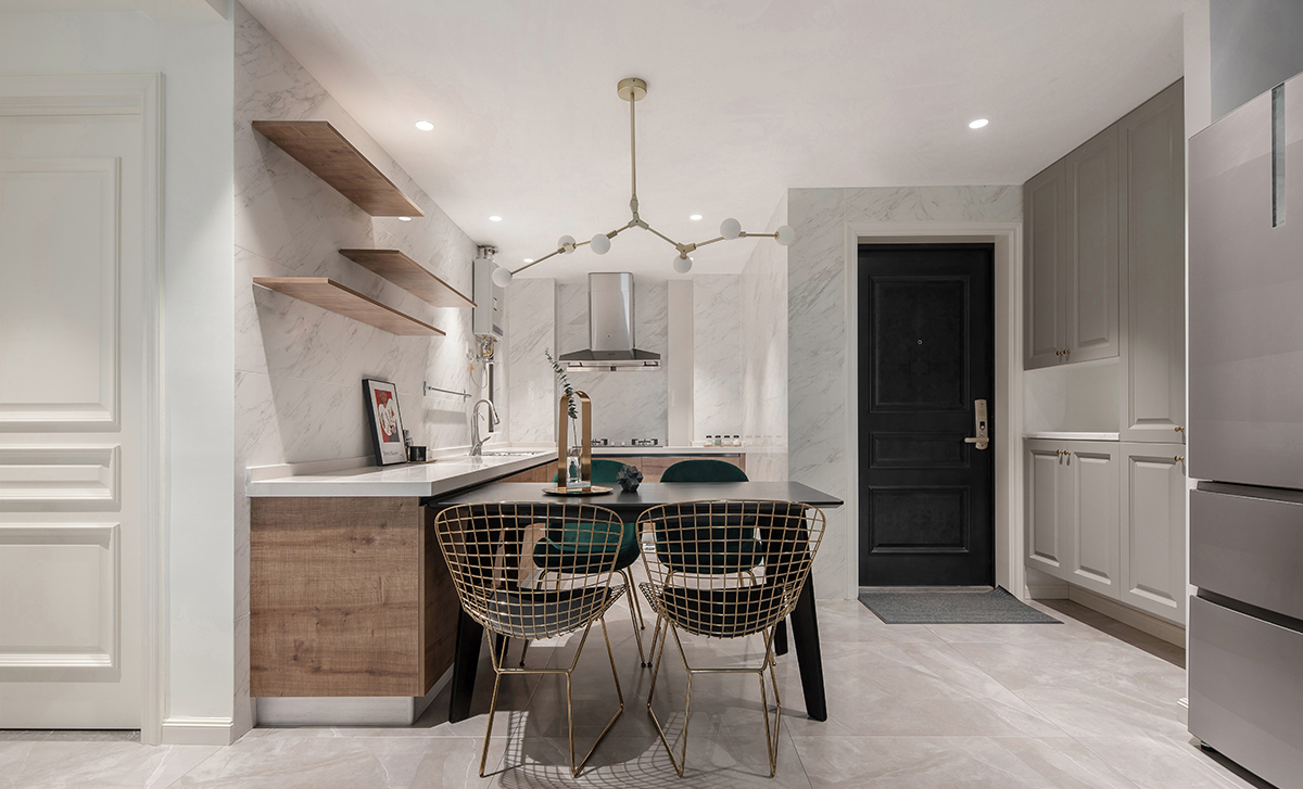 有時(shí)候,廚房的空間并不會(huì)太大,因此我們需要事先考慮好廚房里會(huì)放置哪些較為大件的電器,以便為其規(guī)劃預(yù)留出位置。例如冰箱、燃?xì)庠睢⑽⒉t、抽油煙機(jī)還有烤箱等,另外,廚房臺(tái)面也需要提前留出位置,空間盡稍大一點(diǎn),給日后擇菜切菜烹飪裝盤等留出操作空間來。