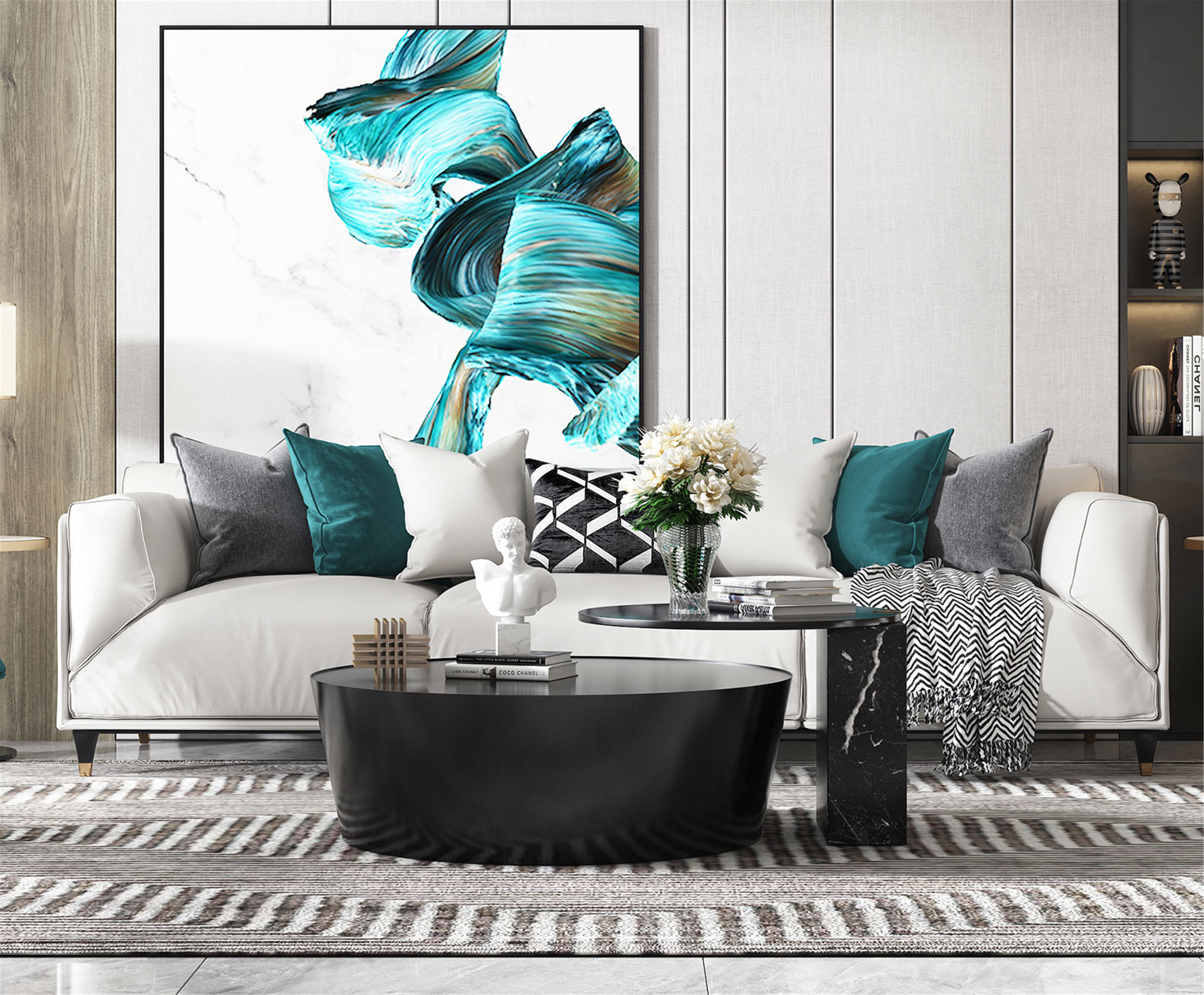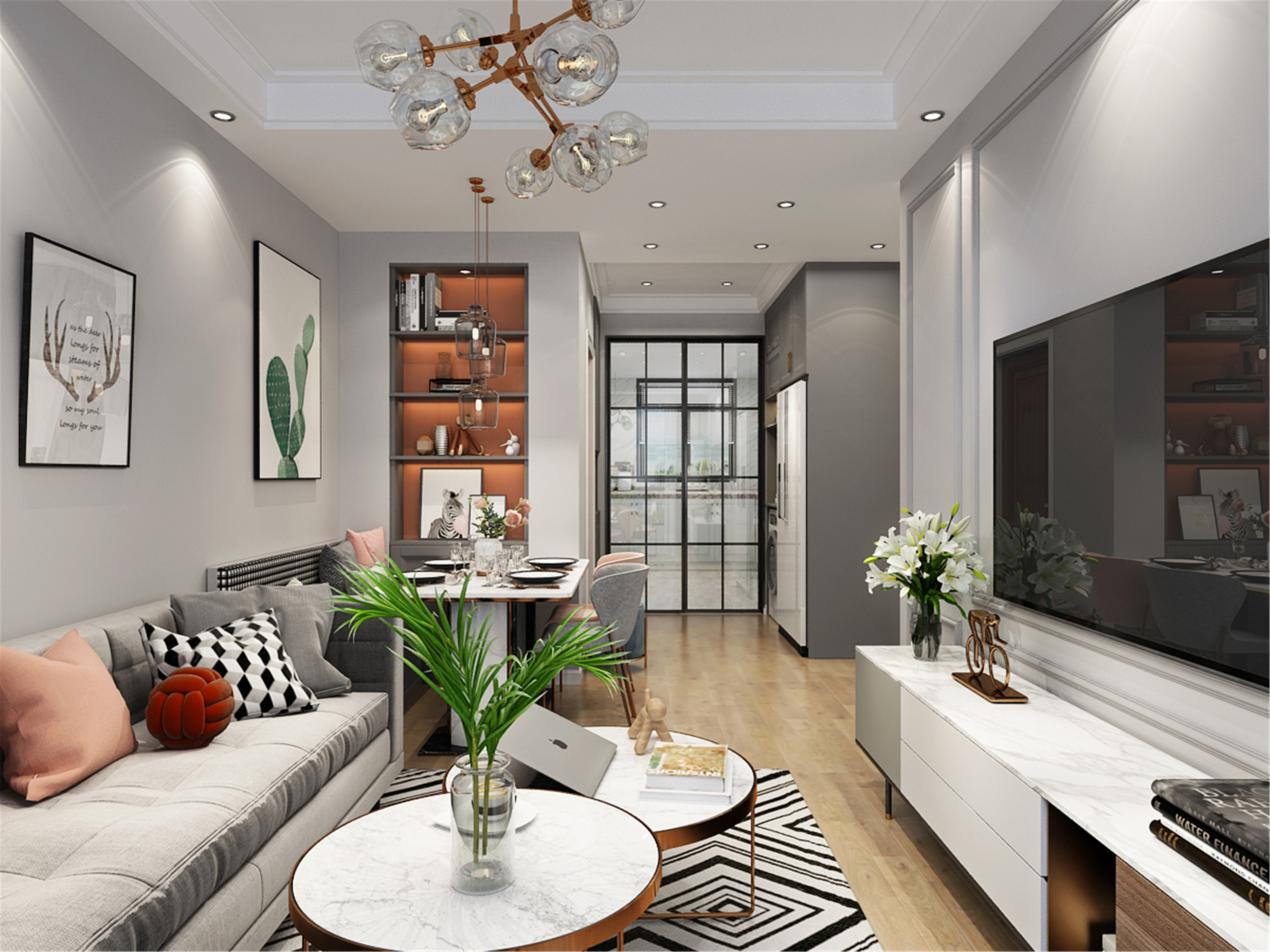 高級(jí)感的前提是干凈明亮,所以小戶型在收納方面,盡量避免選擇開放式。隱藏式和嵌入式的收納,可以使整個(gè)空間顯得干凈整潔。