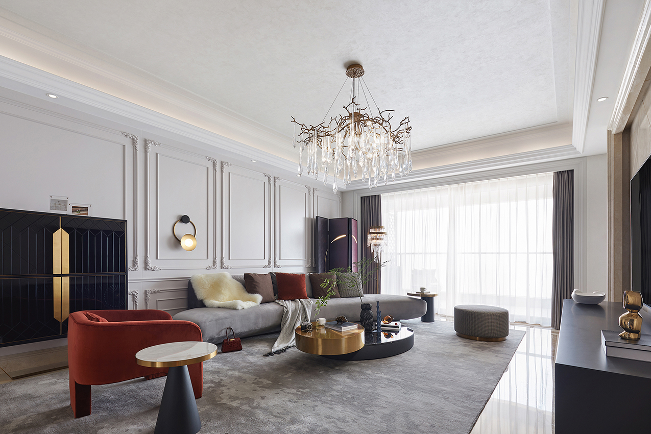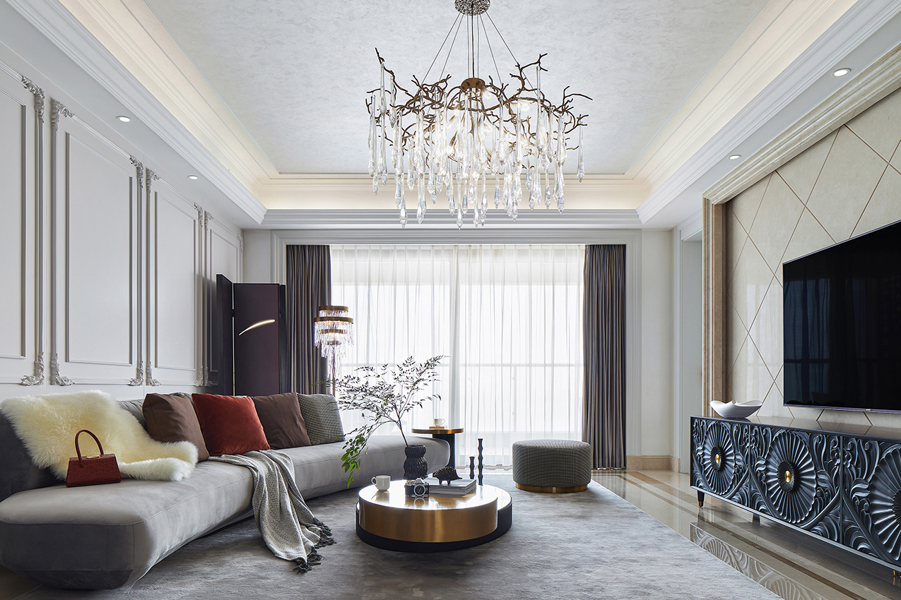優(yōu)雅的線條、雕花,弧形沙發(fā),整個(gè)空間調(diào)性都非常溫柔和慵懶的感覺(jué),讓業(yè)主能完全的在家里放松下來(lái),還原浪漫之家。