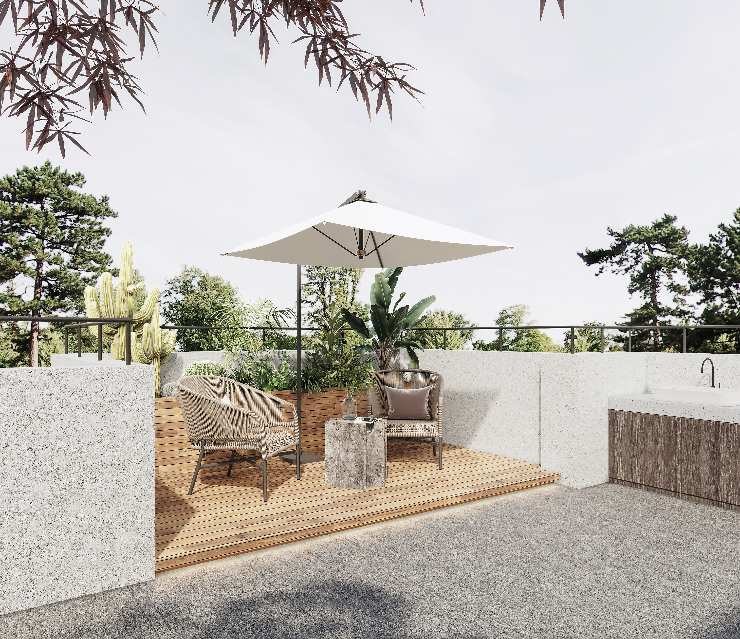 頂樓的防水施工需要格外注意,挑選高品質(zhì)的防水材料。防水施工的重點區(qū)域在房頂、露臺和衛(wèi)生間淋浴房這些位置。如果是有露臺的,那么露臺所使用的所有材質(zhì)都要選擇防水防潮抗曬的,以保證其使用壽命。在家具的選擇上,可以選擇藤制、金屬、防腐木等材質(zhì)。