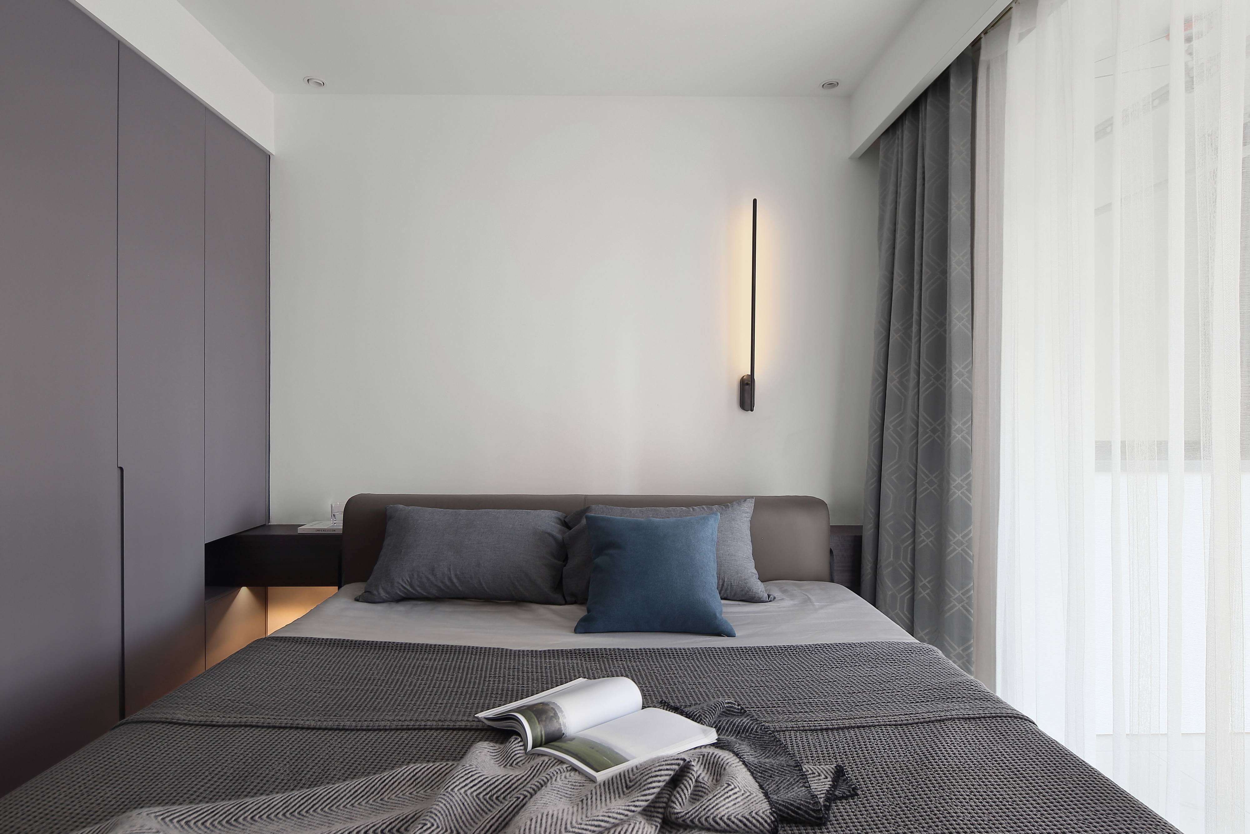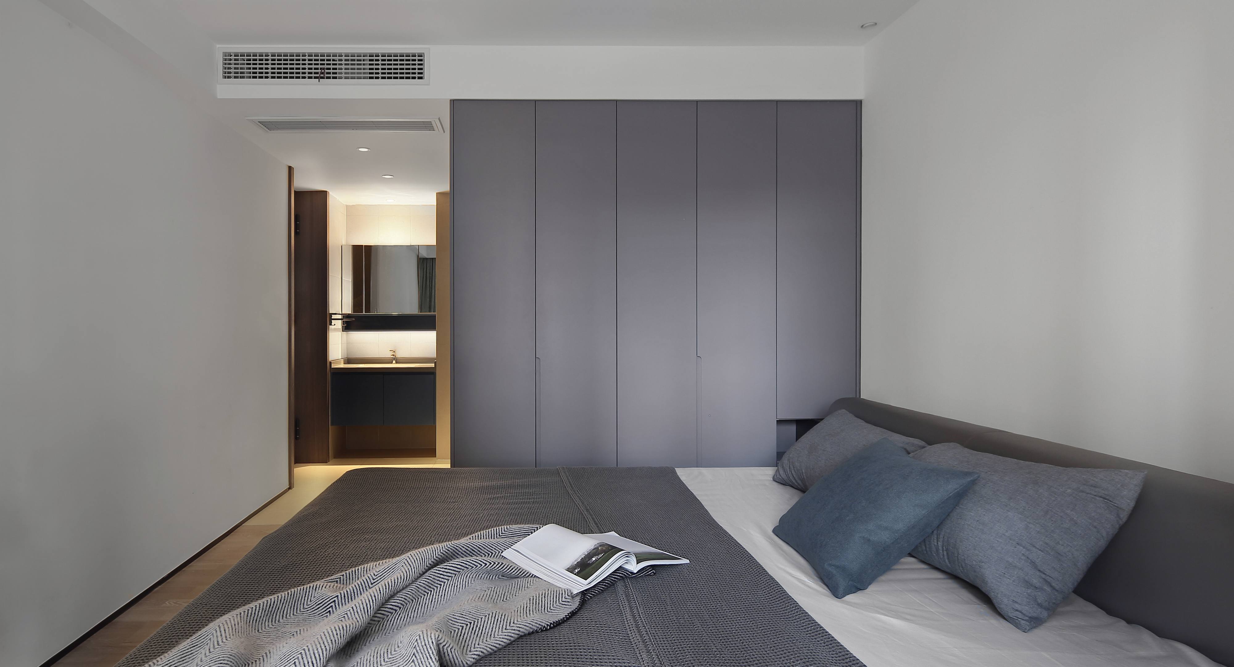 衣柜延伸做床頭柜,不僅滿足多種功能需求,配合燈光的使用,在臥室灰度的和諧色調(diào)中延續(xù)出輕靈和溫情的層次。