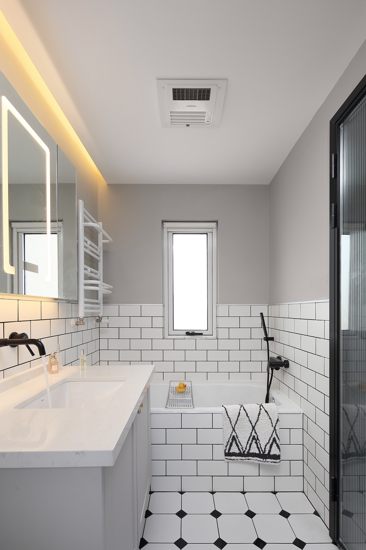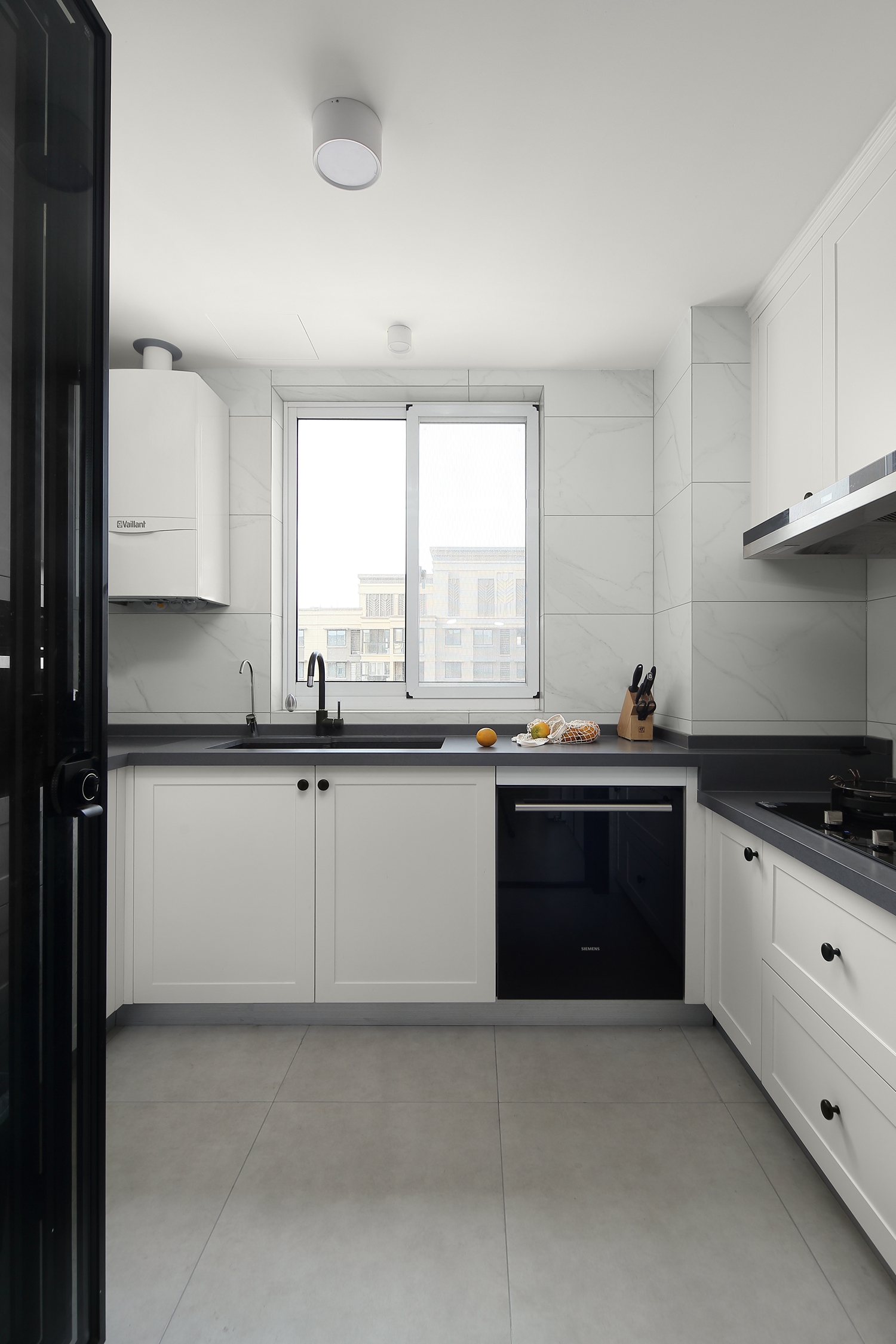 廚房根據(jù)男主人的身高,定制了高低臺(tái),提高了烹飪的舒適度。臺(tái)下盆的設(shè)計(jì),減少了廚房衛(wèi)生死角,讓打掃變得更加輕松。