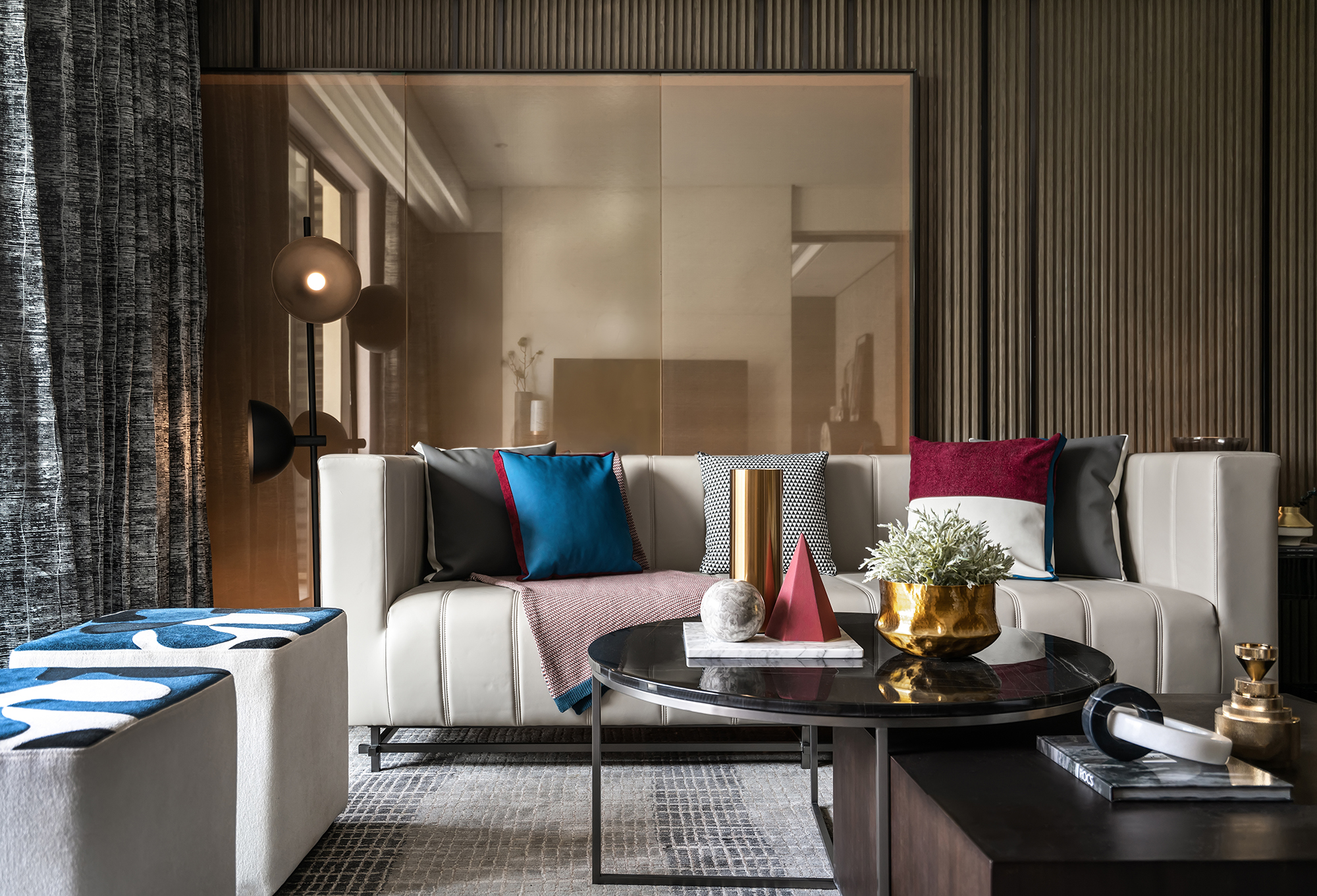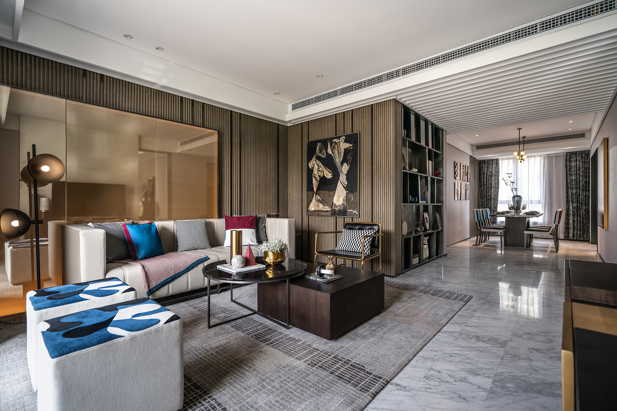 這套別墅面積275平,在設(shè)計(jì)上大膽的運(yùn)用多種色彩碰撞,加上幾何元素裝飾,讓整個(gè)空間顯得奢華卻又不失優(yōu)雅。
