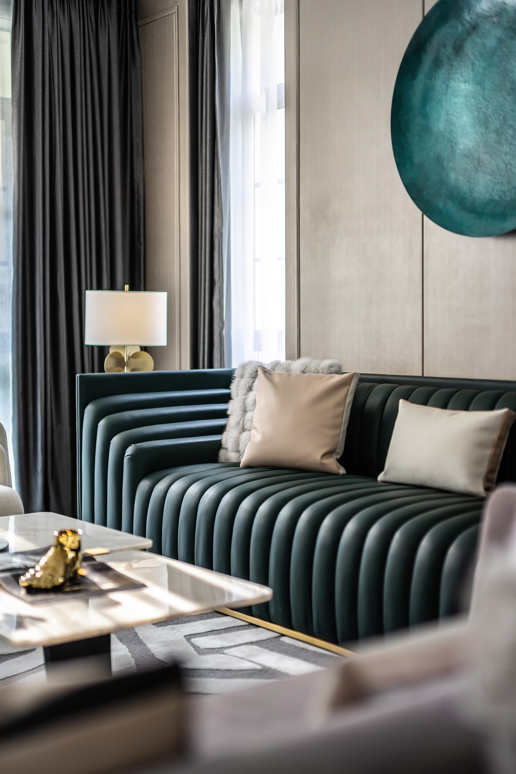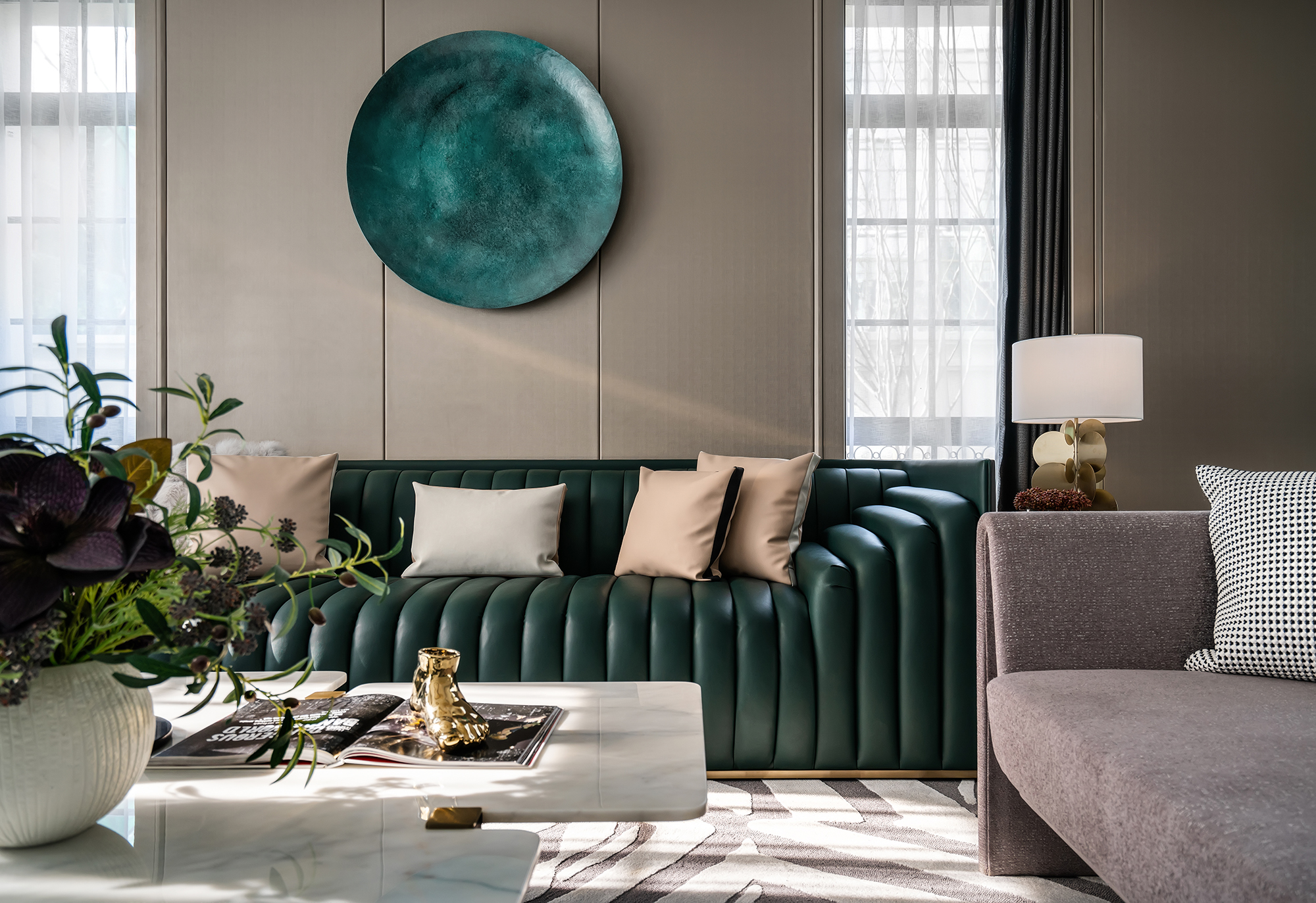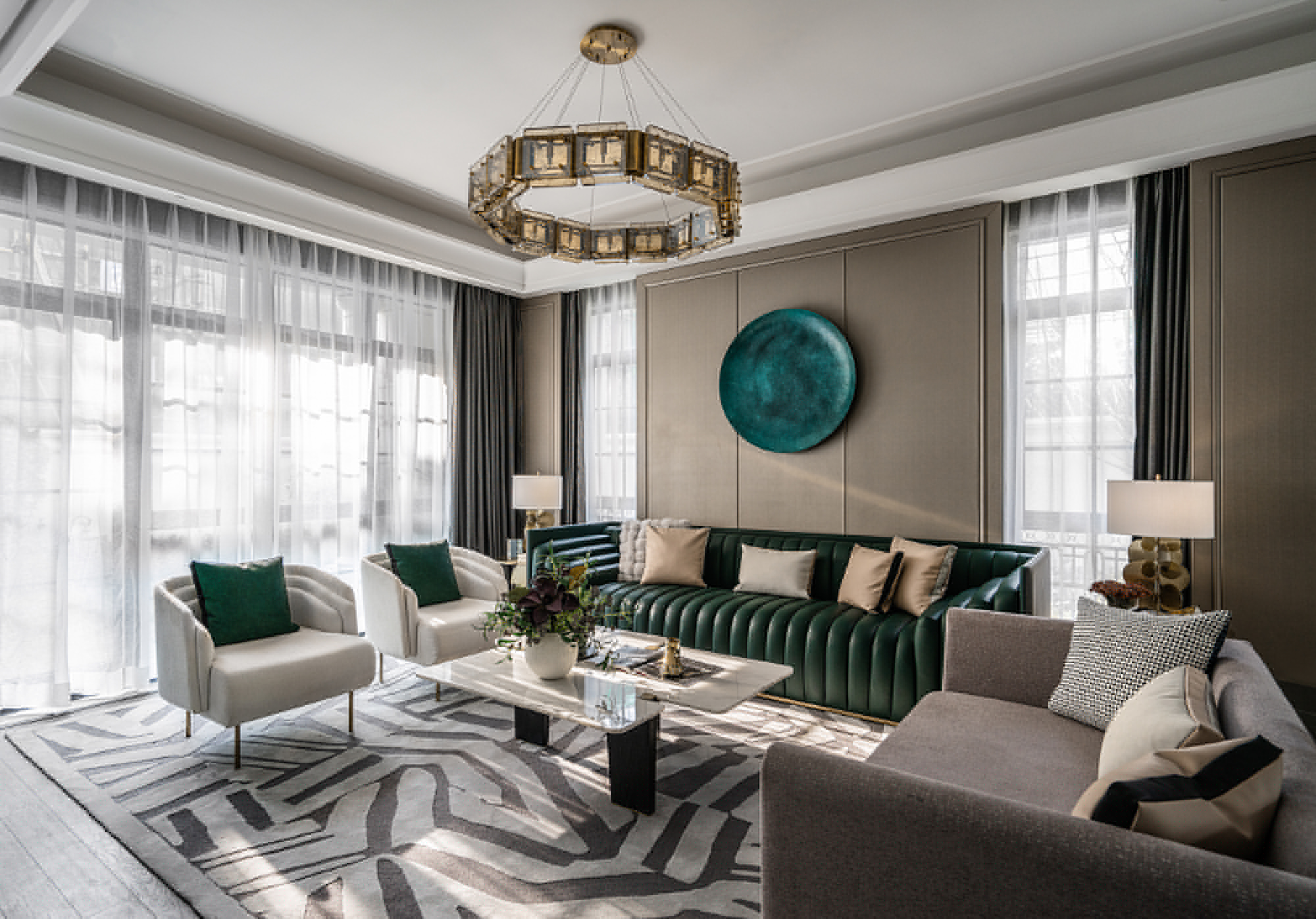 美式風(fēng)格通常強(qiáng)調(diào)線條簡(jiǎn)潔、材料粗獷、色彩對(duì)比明顯,同時(shí)也注重對(duì)形式美感的追求。我的客戶希望打造一個(gè)既舒適又時(shí)尚的居住環(huán)境,因此選擇了美式風(fēng)格。為了突出客戶喜歡的顏色主題,將綠色作為主色調(diào),并通過(guò)精妙的色彩搭配和幾何元素的裝飾達(dá)到了優(yōu)美而又奢華的效果。