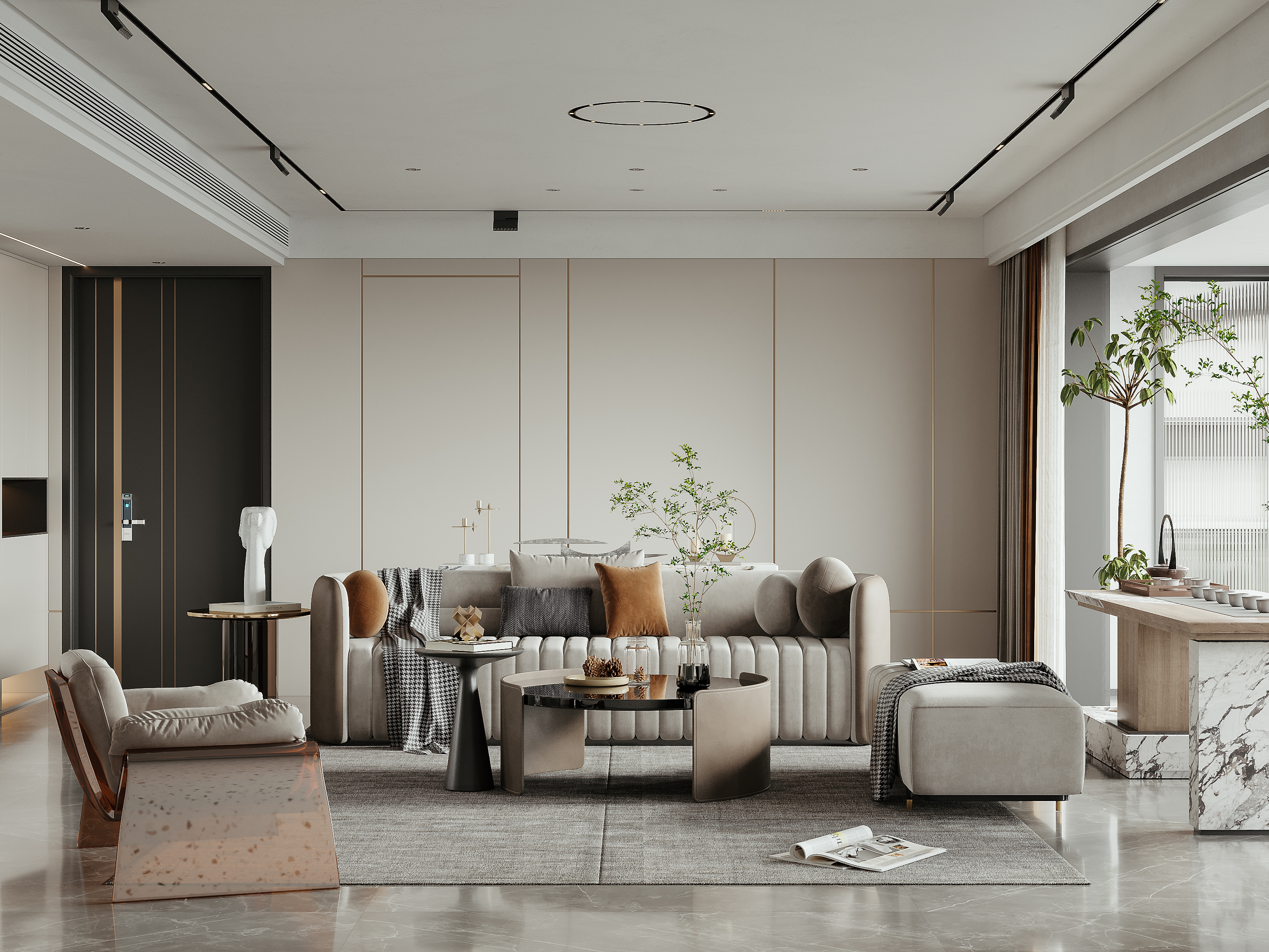 現(xiàn)代輕奢風通過各種元素的運用,增加了空間的層次感和立體感,讓整個客廳呈現(xiàn)出一種現(xiàn)代、簡約又不失奢華的風格,極大提升了房間的舒適度和品質(zhì)感。